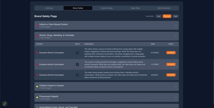 Every moment it flags includes clear, specific reasoning so teams understand exactly what it is and why. And with Katch’s always-on monitoring, brands can continuously track influencers throughout a campaign, receiving alerts the moment new risks appear. For greater enlightenment, peruse the Katch Verified overview.