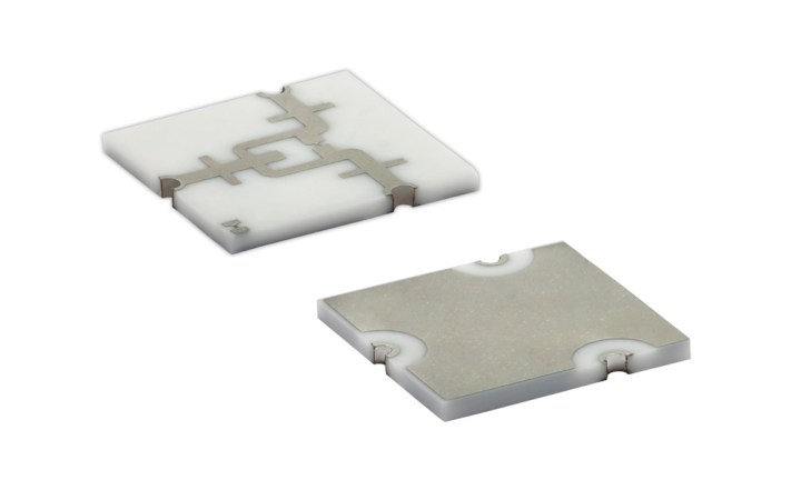 Vishay Intertechnology’s WLKN-000 Wilkinson power divider/combiner promises to increase efficiency and save space in aerospace, defense, and high frequency connectivity applications. Operating over a frequency range from 15 GHz to 20 GHz, the component achieves an insertion loss of less than 0.5 dB below 19 GHz in a compact surface-mount 1817 package. Specifying a return loss of 10 dB to 15 dB, the 1817 package features a three-port design that supports both divider and combiner functionality.